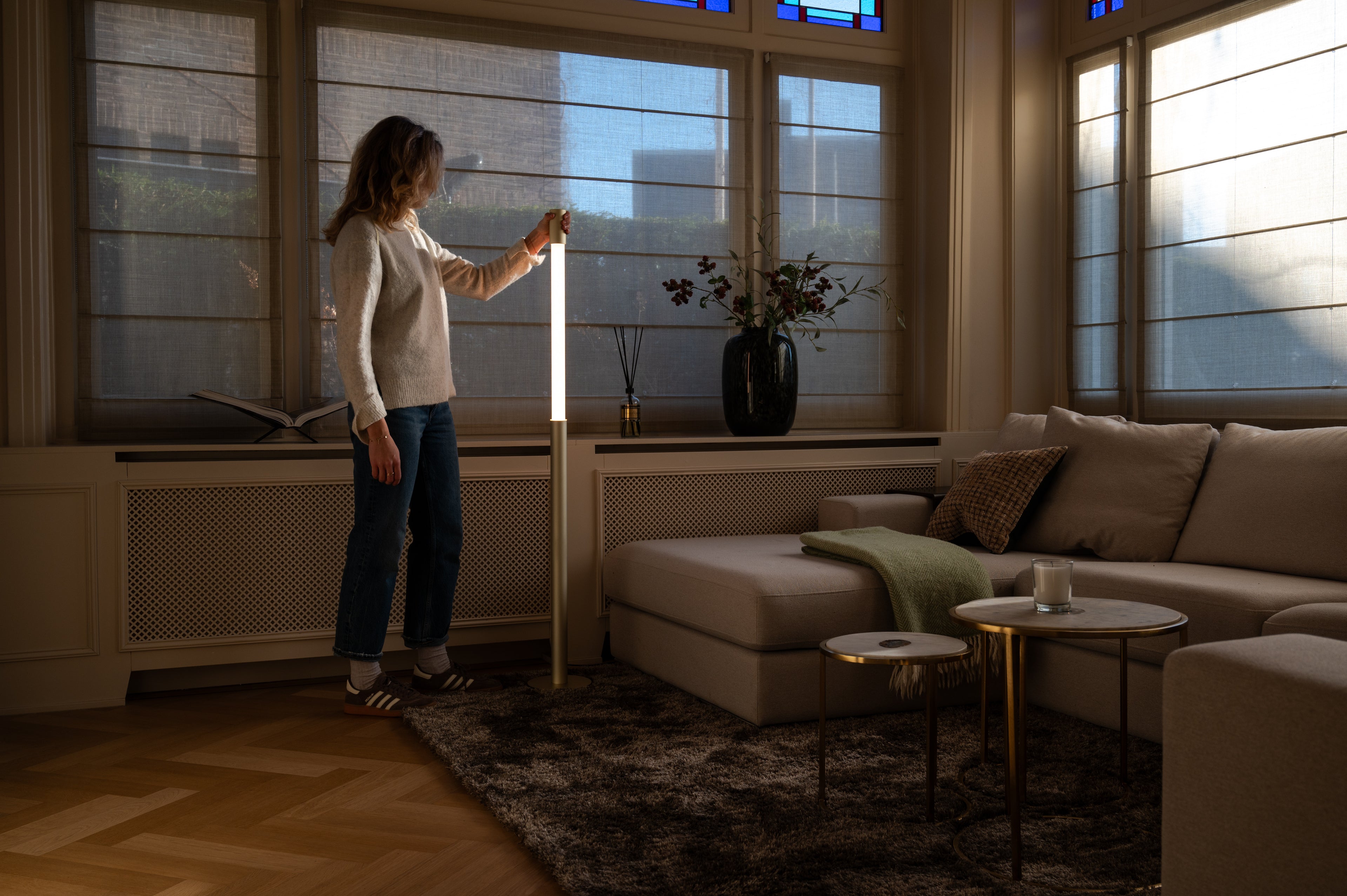 De Slide Light is een interactieve verlichtingsbeleving waarmee je de lamp omhoog of omlaag kunt schuiven om de lichtintensiteit aan te passen. Hiermee kun je de perfecte sfeer creëren met een simpele, elegante beweging.